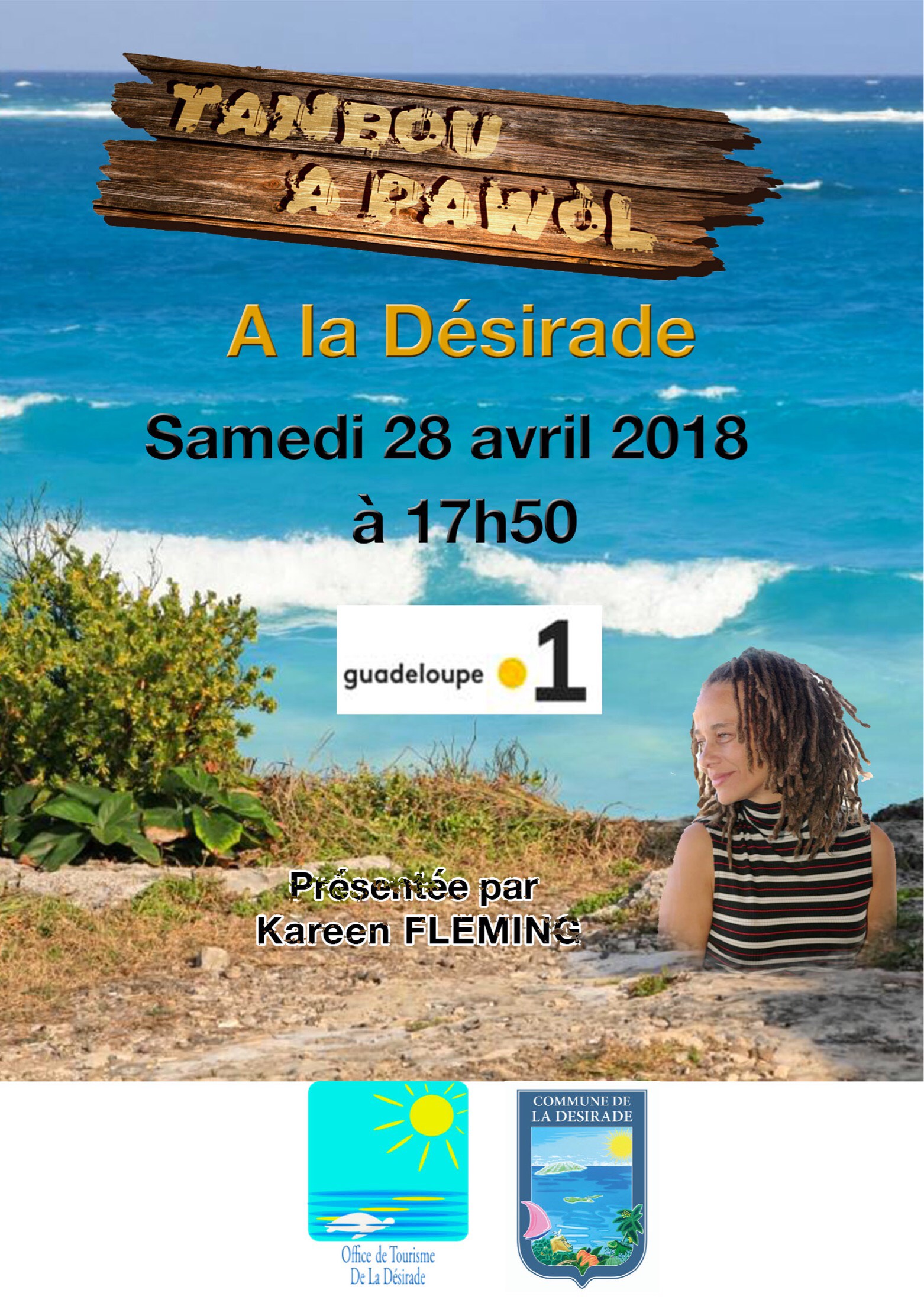 Le samedi 28 avril 2018 à partir de 17h50 venez assister à l’ émission Tanbou A Pawol de Guadeloupe La Première présentée par Kareen Fléming en direct du quai passager de Beauséjour
