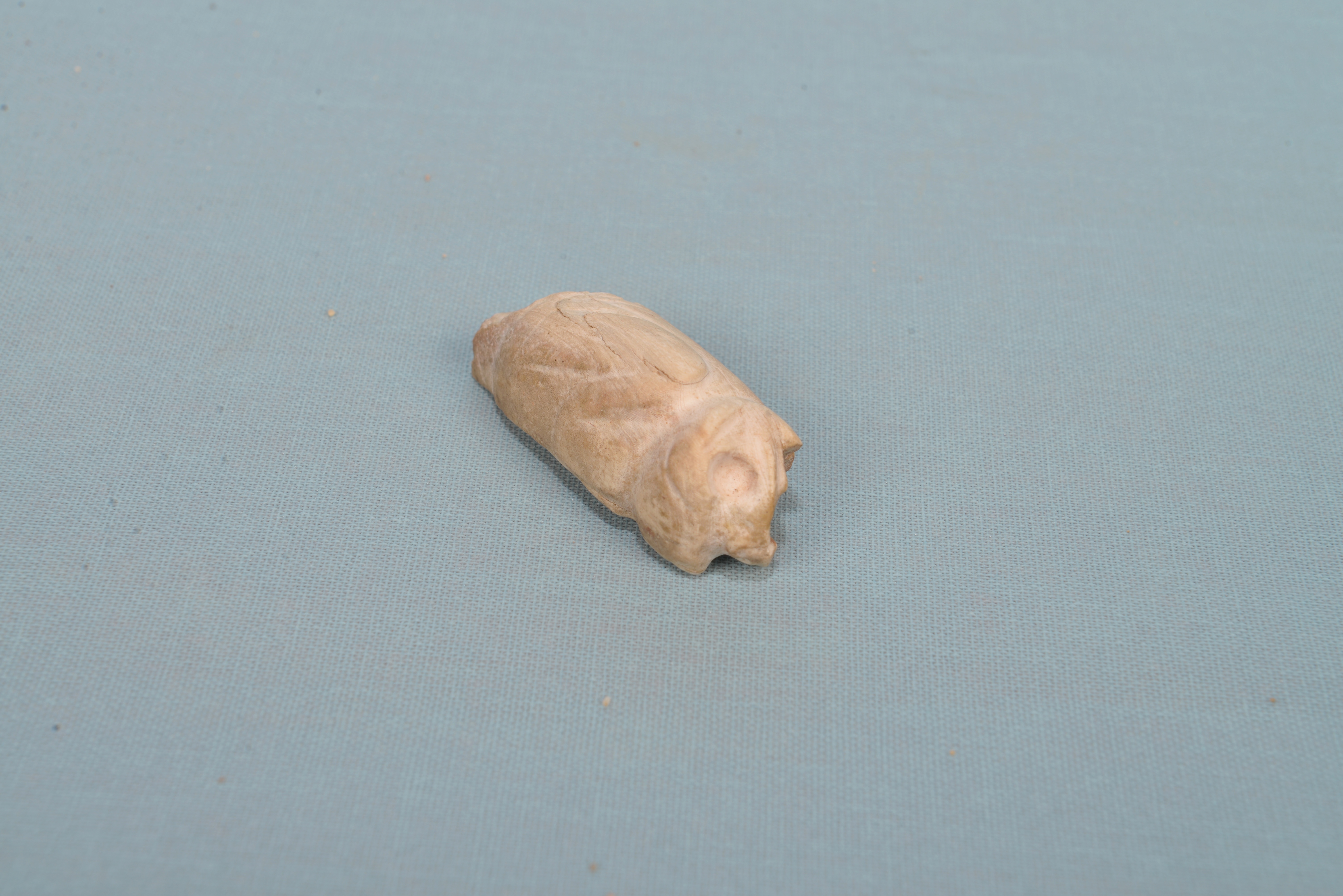 Une perle tubulaire en forme de chauve-souris aux ailes repliées, taillée dans du lambi découverte à la Désirade