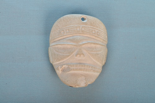 Un pendentif en forme de "masque", de style taïno, fabriqué dans du lambi (taillé, poli et gravé), de la période Céramique Tardif (1200 à 1500 ap. J.C.). Il a été découvert par le père Guibert qui l’a donné au Musée Edgar Clerc, découvert sur le site du Morne Cybèle