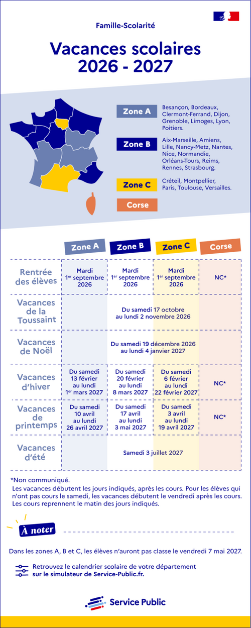 Vacances scolaires 2026-2027